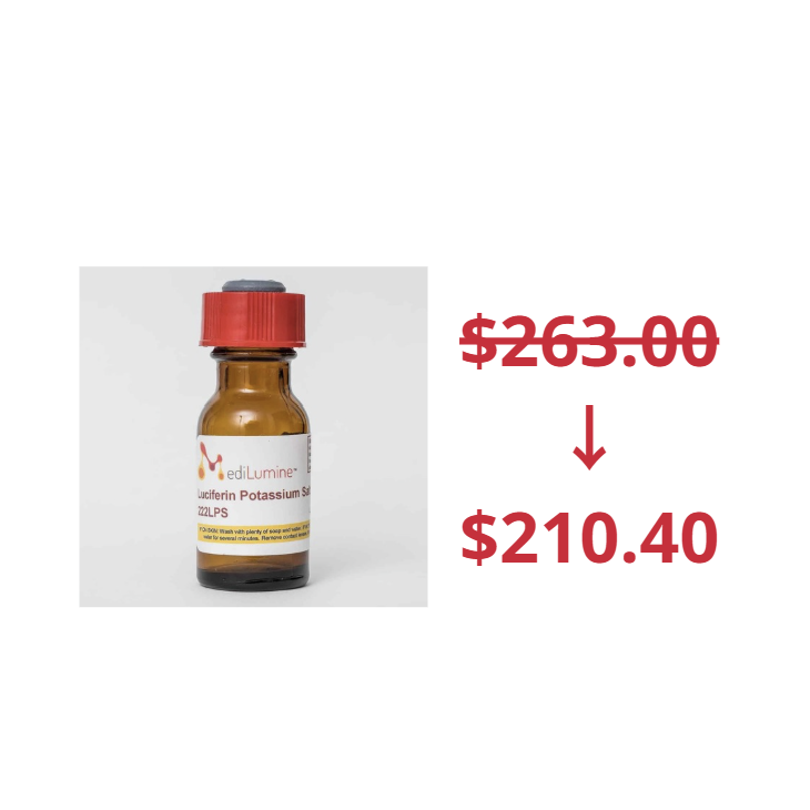 Unlock the power of bioluminescence with our highly pure D-Luciferin Potassium Salt. This water-soluble substrate is ideal for imaging firefly luciferase expression with a peak chemiluminescent emission at 560 nm. Its precision makes it a go-to choice for studying gene expression and metabolic activity, providing clear and reliable results for a wide range of research applications.