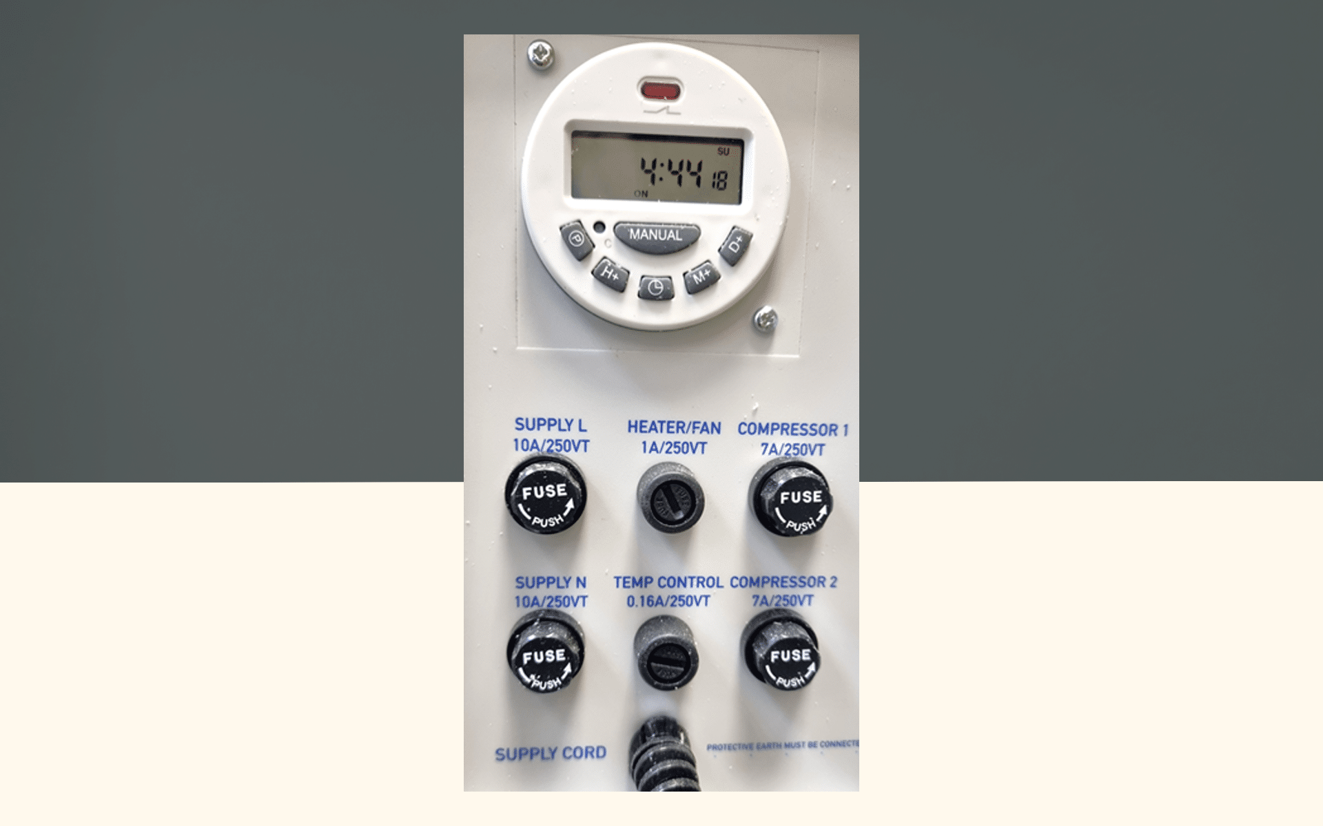 An integrated seven day programmable timer supports reduced energy consumption outside working hours. During standby mode, both chambers operate at minus 40 degrees Celsius to conserve power. At the start of the programmed work period, the system automatically returns to normal operating mode, with the lower chamber reaching minus 80 degrees Celsius.