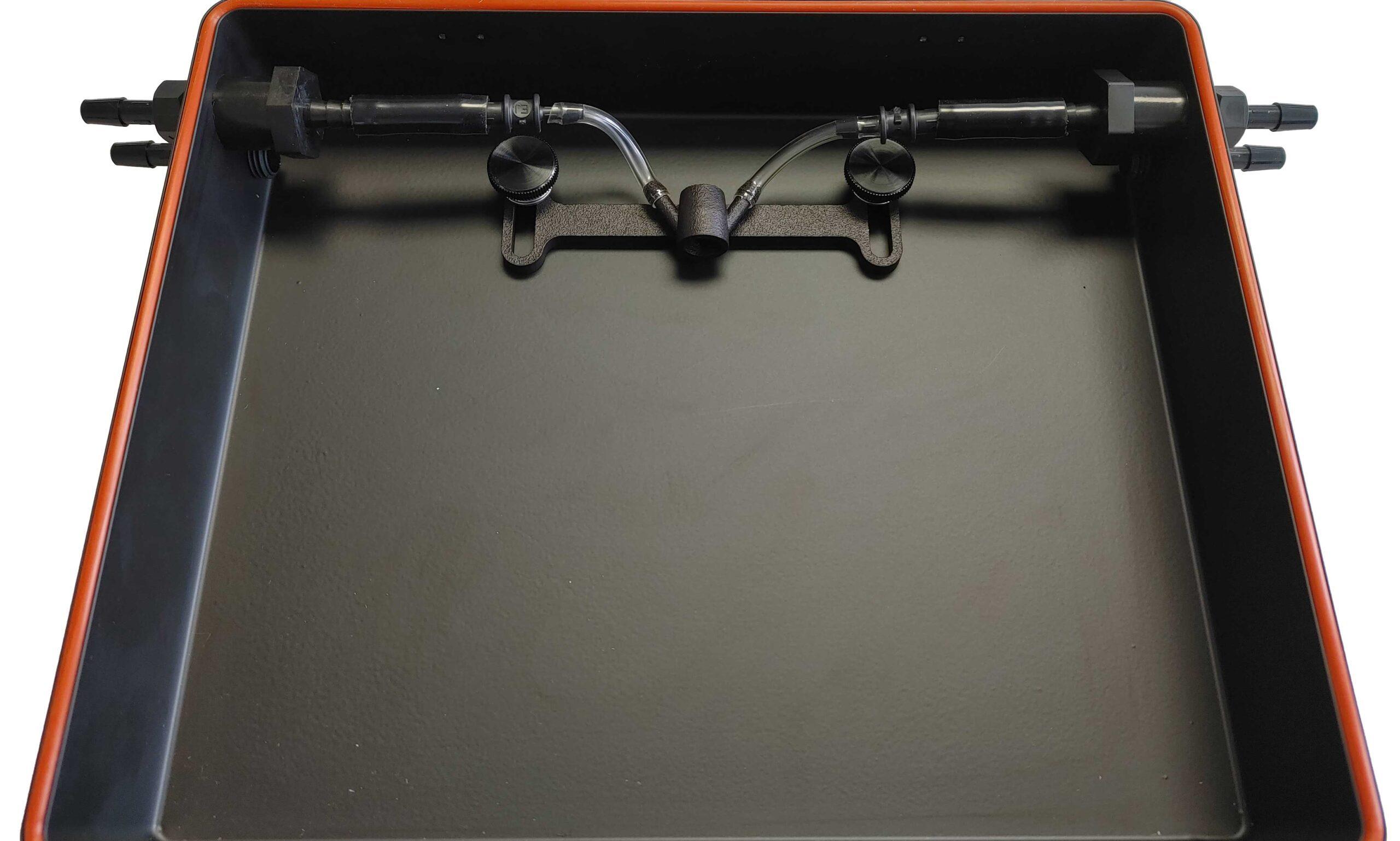 Constructed from durable powder-coated aluminum with a clear plexiglass top, it offers both robustness and excellent visibility while maintaining a hermetically sealed design. Fully autoclavable for easy sterilization, the chamber is designed to transfer heat effectively due to its metal construction. Users have the option to place a heating plate underneath to ensure even heat distribution across the chamber’s surface. This design is ideal for consistent and reliable anesthesia administration in research settings.