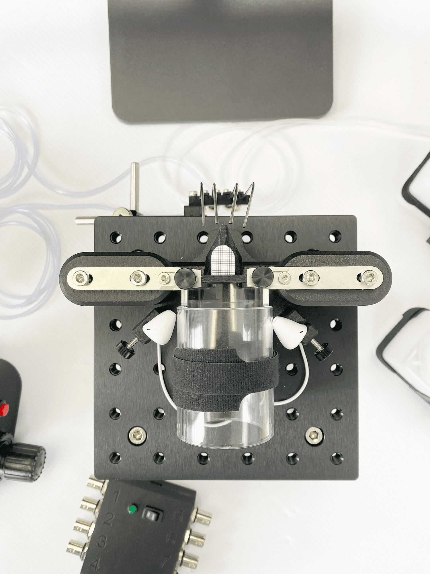 Each device can be customized to meet the researcher’s specific requirements. Please click the “Build your own setup” button below to create your own behavioral setup. Please note the displayed price is for the minimalistic configuration which includes only the head fixation system.