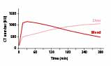 Right: Timecourse of the signal enhancement in blood as well as in liver of mice after injection of ExiTron ultra 18000.