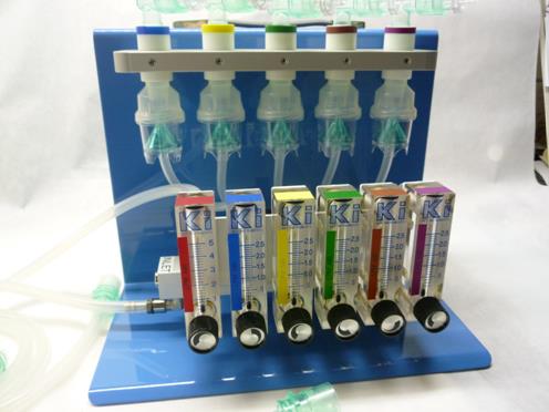 The Multiplex Delivery System is available with 2, 3, 4, 5, and 6 Flowmeter configurations. The Multiplex Delivery System (MDS) allows an investigator to have up to six devices connected to one anesthesia system. One possible configuration would be an induction chamber and up to five non-rebreathing systems operating simultaneously during a study with humidification of rodent lungs.