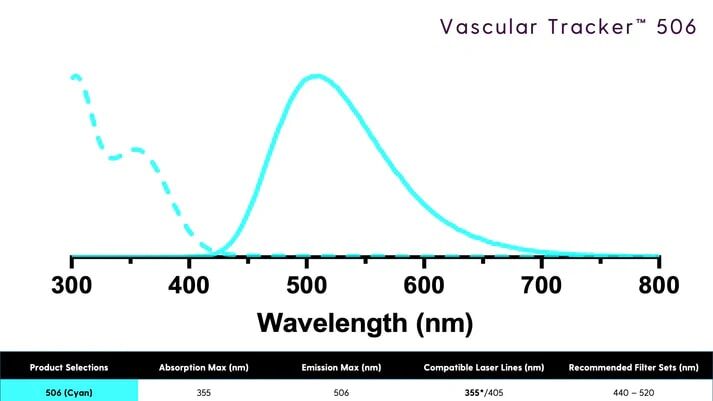 Vascular Tracker™ are biocompatible organic fluorescent nanoparticles, that can be used to fluorescently tag vasculature in living tissues and animals for visualization of vascular structures and study of inflammation and vascular leakage. These nanoparticles are highly biocompatible, designed for in-vivo imaging and animal studies, serve as excellent disease diagnostic reagents.